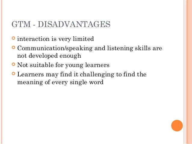 Research into learning theories and teaching models has been ongoing for many years to establish some sort of data that helps towards second language acquisition. Task-based learning TBL it is claimed is one such model that can aid a learner to establish second language acquisition. In recent years a debate has developed over which approaches to structuring and planning and implementing lessons are more effective. This article presents an overview of a task-based learning approach TBL and highlights its advantages over the more traditional Present Practice Produce PPP approach. Advantages and disadvantages of a TBL approach. Disadvantages Appropriateness For certain types of students those studying for examinations elementary learners etc. TBL is often not seen as appropriate because it demands little focus on accuracy and requires language skills above the level of many. Thinking about teaching one-to-one classes This list of advantages and disadvantages from the perspective of the student might be useful to think about when making the decision. It s also useful to be aware of the disadvantages so you can think about how to tackle them for better lessons for both yourself and your student. The advantages of TBL. Task-based learning has some clear advantages. Unlike a PPP approach the students are free of language control. In all three stages they must use all their language resources rather than just practising one pre-selected item. It is important that teachers learn to use a variety of teaching methodologies in order to cater for the range of learning needs and requirements that are present within most class environments. Within this section a variety of teaching methodologies will be explored and their various advantages and disadvantages outlined. Advantages of Problem Based Learning PBL replaces the traditional lectures with assistive learning facultative mentoring discussions and on site experience. This promotes deep learning within the individual. Hence the students knowledge grows as more and more discussions are made. Direct teaching is reduced. Constructivist teaching is a method of teaching based on the constructivism learning theory. According to the theory students learn by building on their previous knowledge and experiences and by actively engaging in the learning process instead of receiving knowledge passively though lectures and memorization. Teaching Methods-Advantages and Disadvantages Types of teaching methods their advantages and disadvantages 2 years ago 273070 views by Andrella Tersoo Students get easily bored if their teacher cannot combine teaching methods in order to make each lesson unique and intriguing.