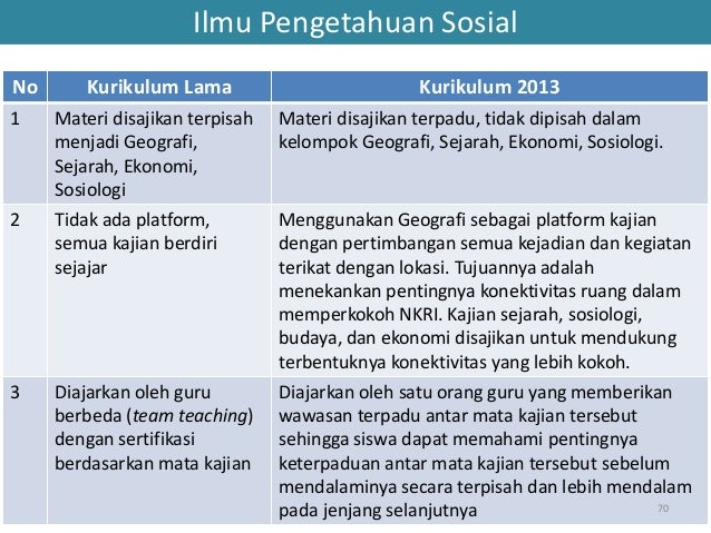 Elemen utama perbaikan Kurikulum 2013 dalam kesesuaian dan kedalaman materi mencakup a mempertahankan mengurangi dan atau menambah materi b bahasa sebagai penghela c tematik terpadu d penguatan IPA dan IPS di SMP e penyesuaian dengan PISA TIMMS dan lembaga lainnya serta dengan perkembangan di berbagai negara. Elemen Perubahan Pada Kurikulum 2013. Kurikulum sebagaimana yang ditegaskan dalam Pasal 1 Ayat 19 Undang-undang Nomor 20 Tahun 2003 adalah seperangkat rencana dan pengaturan mengenai tujuan isi dan bahan pelajaran serta cara yang digunakan sebagai pedoman penyelenggaraan kegiatan pembelajaran untuk mencapai tujuan pendidikan tertentu. BAB II PEMBAHASAN Pengertian Kurikulum 2013 Kurikulum 2013 adalah kurikulum terbaru yang diluncurkanoleh Depertemen Pendidikan Nasional mulai tahun 2013 ini sebagai bentuk pengembangan dari kurikulum sebelumnya yaitu kurikulum 2006 atau Kurikulum Tingkat Satuan Pendidikan yang mencakup kompetensi sikap pengetahuan dan keterampilan secara terpadu. Elemen perubahan kurikulum dari KTSP ke kurikulum 2013 terdapat pada empat domain yakni Standar Kompetensi Lulusan Standar Isi Standar proses dan standar penilaian. Perubahan terjadi sebagai jawaban terkait dengan faktor perkembangan penduduk Indonesia dilihat dari pertumbuhan penduduk usia produktif. Elemen Perubahan Kurikulum 2013 LATAR BELAKANG PENGEMBANGAN KURIKULUM 2013 Kurikulum berkontribusi dalam proses peningkatan kualitas potensi siswa karenanya kurikulum perlu dikembangkan untuk menyesuaikan dengan tujuan pendidikan nasional dan perkembangan dunia globalisasi. Kurikulum sebagai instrumen untukmengarahkan peserta didik untuk menjadi -Manusia yang berkualitas dan mampu menjawab Rasional dan Elemen Perubahan Kurikulum menurut Undang-undang Nomor 20 Tahun 2003 Pasal 1 Ayat 19 adalah seperangkat rencana dan pengaturan mengenai tujuan isi dan bahan pelajaran serta cara yang digunakan sebagai pedoman penyelenggaraan kegiatan pembelajaran untuk mencapai tujuan pendidikan tertentu. Elemen Perubahan Kurikulum 2013 1. ELEMEN PERUBAHAN KURIKULUM 2013 PPT - 1.2 BADAN PENGEMBANGAN SUMBER DAYA MANUSIA PENDIDIKAN DAN KEBUDAYAAN DAN PENJAMINAN MUTU PENDIDIKAN KEMENTERIAN PENDIDIKAN DAN KEBUDAYAAN 2. Bagi para guru sebaiknya lebih ditekankan pada pembahasan slide hal 3 4 5 6 7 8 9 10 16 2 3. Elemen-Elemen Perubahan Kurikulum 2013. Perubahan kurikulum 2013 berwujud pada a kompetensi lulusan b materi c proses dan d penilaian. Perubahan pada Kompetensi Lulusan adalah konstruksi holistik didukung oleh semua materi atau mapel terintegrasi secara vertikal maupun horizontal. MEMAHAMI ELEMEN PERUBAHAN KURIKULUM 2013 OLEH ERMA SULISTIYANINGSIH BAB 1 PENDAHULUAN A. Latar Belakang Penyelenggaraan pendidikan sebagaimana yang diamanatkan dalam Undang-undang No.20 Tahun 2003 tentang Sistem Pendidikan Nasional diharapkan dapat memujudkan proses berkembangnya kualitas pribadi peserta didik sebagai generasi penerus bangsa dimasa depan yang diyakini akan menjadi faktor