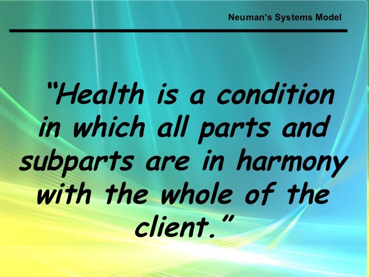 Betty Neuman 1924 present is a nursing theorist who developed the Neuman Systems Model.She gave many years perfecting a systems model that views at patients holistically. She inquired theories from several theorists and philosophers and applied her knowledge in clinical and teaching expertise to come up with the Neuman Systems Model that has been accepted adopted and applied as a core The Neuman Systems Model NSM is a practical guideline used by caregiving and administrative staff members to produce positive client outcomes. Betty Neuman developed the theory based on her education and professional experiences. The model outlines a dynamic script deployed by practitioners around the world and the framework emphasizes client individuality by considering clients Neuman Systems Model Inc. NEW June 20 2019 Betty s Video Greetings The Neuman Systems Model is a unique open systems-based perspective that provides a unifying focus of approaching a wide range of international health concerns. In 1974 Neuman s model was refined and published in Conceptual Models for Nursing Practice. It was classified as a systems model and was titled The Betty Neuman Health-Care Systems Model A Total Person Approach to Patient Problems. In this publication the term patient was replaced with the term client. Betty Neuman s Systems Model provides a comprehensive holistic and system-based approach to nursing that contains an element of flexibility. The theory focuses on the response of the patient system to actual or potential environmental stressors and the use of primary secondary and tertiary nursing prevention intervention for retention attainment and maintenance of patient system wellness. This is summary ppt of Betty Neuman s Systems Model Betty Neuman s system model provides a comprehensive flexible holistic and system based perspective for nursing. Neuman s model focuses on the response of the client system to actual or potential environmental stressors and the use of primary secondary and tertiary nursing prevention intervention for retention attainment and maintenance of Application of Betty Neuman s System Model OBJECTIVES to assess the patient condition by the various methods explained by the nursing theory to identify the needs of the patient to demonstrate an effective communication and interaction with the patient. to select a theory for the application according to the need of the patient to apply the Neuman Systems Model Inc. Betty Neuman History Model Development NSM Resources. Bibliography Neuman Textbooks NSM Celebrating Academic-Practice Partnerships 2017 NSM and Education 1998 NSM Monograph 1993 Neuman 2016 ppt International Resources Neuman Video Greeting - June 20 2019 Betty Neuman Systems Model - Duration 8 15. Marilyn Martinez 2 866 views. Mechanical Ventilation Explained Clearly Neuman s Systems Model Overview - Duration 4 54.