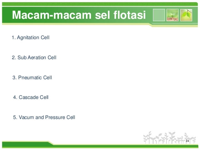 Filtrasi dan flotasi 1. Teknologi Lingkungan II Primary Treatment Filtrasi dan Flotasi KELOMPOK 4 KA01 2013 1 2. Anggota Ahmad Fakih Budiarto 1513001 Kurnia Amanda 1513009 Nadya Nanda Islami 1513010 Lestari Cahyati 1513006 2 1 3 4 5 Dika Kustiani 1513022 2 Pengolahan secara kimia pada IPAL biasanya digunakan untuk netralisasi limbah asam maupun basa memperbaiki proses pemisahan lumpur memisahkan padatan yang tak terlarut mengurangi konsentrasi minyak dan lemak meningkatkan efisiensi instalasi flotasi dan filtrasi serta mengoksidasi warna dan racun Siregar 2005 44 . Terjadinya flotasi merupakan hasil interaksi antara gelembung-gelembung udara dengan suatu fasa terdispersi di mana kecepatan gaya dorong ke atas sangat tergantung pada gaya gravitasi dan disperse. Flotasi juga dipengaruhi oleh konsentrasi permukaan dari fasa terdispersi dan pemakaian bahan kimia sebagai penurun tegangan antara fasa Flotasi merupakan pemisahan satu mineral atau lebih dengan mineral lainnya melalui pengapungan. Mengapungkan mineral tertentu dari mineral lainnya dengan bantuan gelembung udara sampai ke permukaan air. Secara spesifik pemisahan ini disebut froth flotation atau flotasi buih. Media pemisahannya adalah air dan gelembung udara. Proses flotasi udara terlarut digunakan dalam pengolahan air limbah industri. Hal ini juga efektif untuk pengolahan air minum di mana air dipengaruhi dengan ganggang dan kotoran lainnya. Tank-tank flotasi udara terlarut sederhana dan mudah digunakan perangkat yang digunakan dalam pabrik-pabrik industri. Hal ini dilakukan untuk mencegah pembentukan kristal dalam corong saring dan peralatan lainnya yang hadir dalam kontak dengan larutan. Akibatnya peralatan dan larutan yang digunakan dipanaskan untuk mencegah penurunan suhu yang cepat yang pada gilirannya akan menyebabkan kristalisasi dari padatan di corong dan menghambat proses penyaringan. Mekanisme Pemisahan Mineral Dalam Sel Flotasi. Mekanisme pemisahan mineral hydrophobic dengan mineral hydrophilic dengan cara flotasi dapat dilihat pada gambar animasi di bawah. Floatasi dilakukan dengan menggunakan mesin flotasi yang terdiri dari alat utama yaitu sel flotasi impeler dan motor penggerak. Proses koagulasi flokulasi merupakan salah satu cara pengolahan limbah cair untuk menghilangkan partikel-partikel yang terdapat didalamnya. Koagulasi diartikan sebagai proses kimia fisik dari pencampuran bahan koagulan ke dalam aliran limbah dan selanjutnya diaduk cepat dalam bentuk larutan tercampur. media filtrasi multi pasir antrasit dan garnet. Flotasi Flotasi digunakan proses daya apung untuk memisahkan partikel padatan tersuspensi dari limbah cair dan pemisahan lemak pelumas dari industri olahan susu sapi kerbau dan juga untuk memisahkan partikel padat rendah densitas. Pada industri roti olahan ikan dan industri olahan unggas Gravity Filtration Filtrasi yang cairannya mengalir karena gaya berat. Vacum Filtration Filtrasi dengan cairan yang mengalir karena prinsip hampa udara penghisapan . Macam-macam filter GRAVITY FILTER Merupakan tipe paling tua dan sederhana Alat dan bahan mudah diperoleh murah 7.