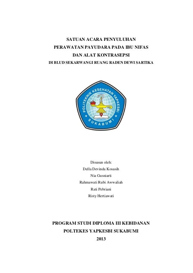 Penggunaan alat kontrasepsi sangat berperan penting untuk mengngontrol angka kelahiran. Selain itu masyarakat harus mengetahui tentang macam-macam alat kontrasepsi yang dapat digunakan agar memberikan efek yang sesuai dengan yang diinginkan. Kontrsepsi dapat dilakukan tanpa menggunakan alat secara mekanis menggunakan obat alat atau dengan cara operasi. Pemilihan jenis kontrasepsi didasarkan pada tujuan penggunaan kontrsepsi yaitu Menunda kehamilan. Pasangan dengan istri berusia dibawah 20 tahun dianjurkan menunda kehamilannya. 5 Jelaskan bagaimana pasca pemasangan alat kontrasepsi IUD 6 Jelaskan bagaimana indikasi dan kontraindikasi alat kontrasepsi IUD 7 Menyebutkan keuntungan serta kerugian alat kontrasepsi IUD 8 Menyebutkan apa saja efek samping dan komplikasi alat kontrasepsi IUD 5 menit 9 Jelaskan bagaimana waktu pemasangan alat kontrasepsi IUD SATUAN ACARA PENYULUHAN SAP TENTANG KB KELUARGA BERENCANA Dipasang pada akhir atau pada hari sebelum berakhirnya haid segera setetalh melahirkan 2-4 hari 40 hari tingkat keefektifannya lebih tinggi dengan jangka waktu lebih lama tetapi pemasangannya masih dianggap menakutkan untuk sebagian masyarakat awam tetapi lain halnya bagi masyarakat yang sudah mengenal mereka leboh memilih memakai IUD karena lebih tenang pemasangnnya kurang dari 5 menit Banyak jenis alat kontrasepsi yang dapat digunakan oleh PUS diantaranya ada alat kontrasepsi hormonal non hormonal alami dan kontap. Jenis alat kontrasepsi dapat dipilih oleh PUS tergantung dengan kondisi fisik dan factor keadaan lainnya seperti keinginan pasangannya. Pil KB atau oral contraceptives pill merupakan alat kontrasepsi hormonal yang berupa obat dalam bentuk pil yang dimasukkan melalui mulut diminum berisi hormon estrogen dan atau progesteron. bertujuan untuk mengendalikan kelahiran atau mencegah kehamilan dengan menghambat pelepasan sel telur dari ovarium setiap bulannya. Pil KB akan efektif dan aman apabila digunakan secara benar dan konsisten. SAP Alat Kontrasepsi PERENCANAAN PENDIDIKAN KESEHATAN . Berdasarkan hasil pengkajian yang telah dilakukan didapatkan Keluarga Tn. E belum mengetahui tentang alat kontrasepsi. Home SAP Satuan Acara Penyuluhan SAP Satuan Acara Penyuluhan Alat Kontrasepsi Thursday August 1 2013 SAP Satuan Acara Penyuluhan Alat Kontrasepsi Alat kontrasepsi Dalam Rahim Kontrasepsi yang terbuat dari logam yang berbentuk seperti T dipasang dalam rahim dengan memakai alat khusus oleh dokter atau bidan yang sudah dilatih. Dengan indikasi pemasangan sebagai berikut telah mendapat persetujuan suami sudah punya anak punya anak tetapi belum ingin hamil tidak ingin hamil paling tidak