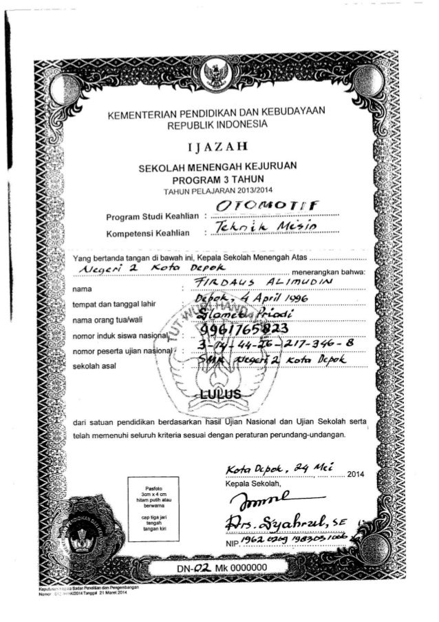 Surat edaran petunjuk teknis ijazah dan skhun final edit 2 1. 1 Nomor 7396 H TU 2014 6 Juni 2014 Lampiran 1 berkas Hal Petunjuk Teknis Penulisan Ijazah Tahun Pelajaran 2013 2014 Kepada Yth Kepala Dinas Pendidikan Provinsi terlampir di seluruh Indonesia Dengan hormat menindaklanjuti SK Balitbang No 12 H HK tahun 2014 tentang Bentuk Spesifikasi Pencetakan dan Pendistribusian Blangko Ijazah untuk SD SDLB SMP SMPLB SMA SMALB dan SMK hanya diterbitkan oleh satuan pendidikan yang sudah diakreditasi sedang ijazah untuk Paket A Paket B Paket C dan Paket C Kejuruan oleh Dinas Pendidikan Kabupaten Kota. Ijazah dan hasil ujian daftar nilai ujian dicetak bolak-balik Ijazah di halaman depan dan Lampiran surat nomor 5337 H TU 2016 tanggal 27 April 2016 NO Kepala Dinas 1. Dinas Pendidikan Provinsi Aceh 2. Dinas Pendidikan Provinsi Sumatera Utara 3. Dinas Pendidikan Provinsi Riau 4. Dinas Pendidikan Provinsi Kepulauan Riau 5. Dinas Pendidikan Provinsi Jambi 6. Title Slide of Ijazah Slideshare uses cookies to improve functionality and performance and to provide you with relevant advertising. If you continue browsing the site you agree to the use of cookies on this website. Sebagai Pedoman untuk Penulisan Ijasah Tahun Pelajaran 2013 dapat diunduh Surat Edaran Petunjuk Teknis Ijazah dan SKHUN Final Edit 1 1 Contoh Surat permohonan penggantian yang kami bagian ini ada 2 dua versi dan filenya dalam bentuk words sehingga siap edit dan bisa digunakan untuk penggantian blangko ijzah SD SMP SMA SMK. Jangan lupa pada surat ditambahkan kop sekolah nomor seri ijazah dan keterangan rusak. Demikianlah tentang petunjuk penulisan ijazah MI MTs Ma Terbaru 2016. Untuk lebih jelasnya silahkan unduh juknisnya DISINI. Cara Menentukan Arah Kiblat Menurut Edaran Kemenag Contoh Surat Pengumuman Kelulusan dan Keterangan L Juknis Penulisan Ijazah MI MTs Ma Terbaru Demikian info mengenai Revisi Juknis Penulisan dan Pengisian Blanko Ijazah MI MTs MA dan SHUAMBN MTs dan MA Tahun Hasil Rapat Pleno dewan guru dan absen rapat. Permohonan blanko ijazah sesuai dengan kelulusan Surat Edaran Petunjuk Teknis Ijazah dan SKHUN REVISI FINAL. Surat Edaran Petunjuk Teknis Ijazah dan SKHUN REVISI FINAL. Revisi PEMETAAN GURU SD SEKOTA SURABAYA Surat Pengantar penggantian blanko ijazah Contoh surat ini bisa di gunakan bagi bapak ibu apabila dalam penulisan dan pengisian ijazah mengalami kesalahan seperti Nomor Ijazah atau Tanggal Lahir dan kesalahan -kesalahan yang lainnya karena yang namanya manusia tidak luput dari salah dan lupa maka dari itu untuk mengatasi permasalahn dalam soal mengalami kesalahan dalam penulisan